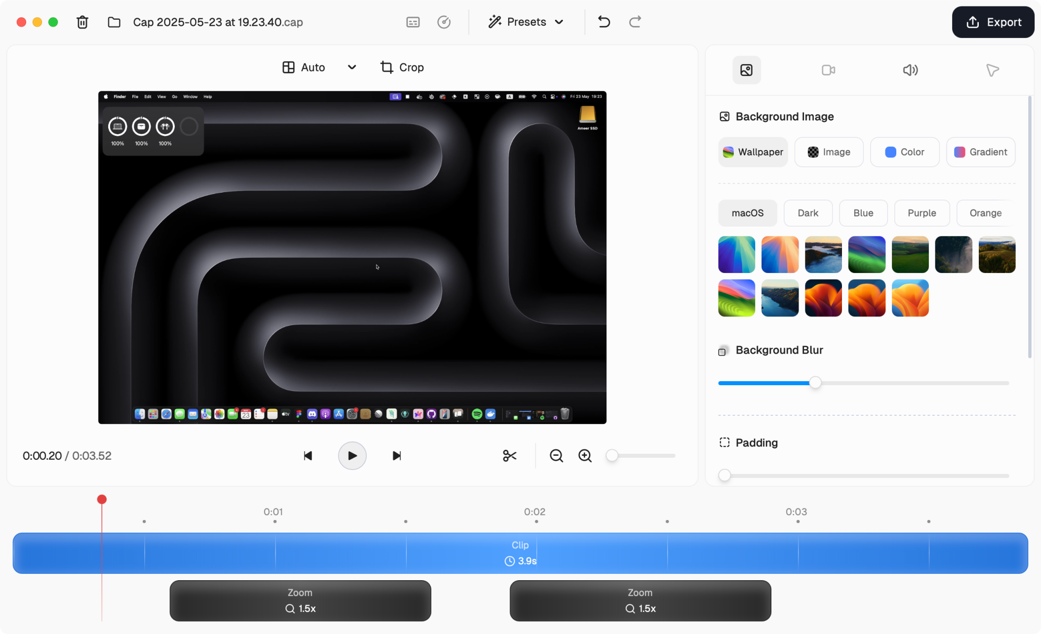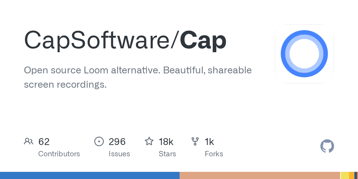 docker compose up -d on any VPS gives you a full Cap server. Railway and Coolify one-click templates are official.scap) and uses native OS APIs, so even long recordings stay small and CPU-light compared to Electron-based competitors.cap.yourdomain.com, which matters if you send recordings to customers.