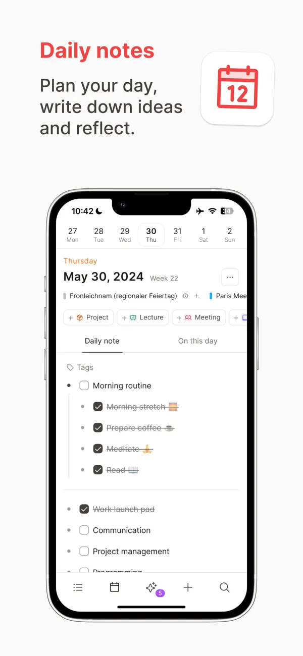 Best for: Researchers, writers, students, consultants, designers and any solo knowledge worker who has hit the wall with Notion’s page-and-database mental model or with Obsidian’s blank-canvas overhead. If you live in daily notes and want a tool that connects ideas to people, books and projects automatically, Capacities is currently the best-designed app in this niche.