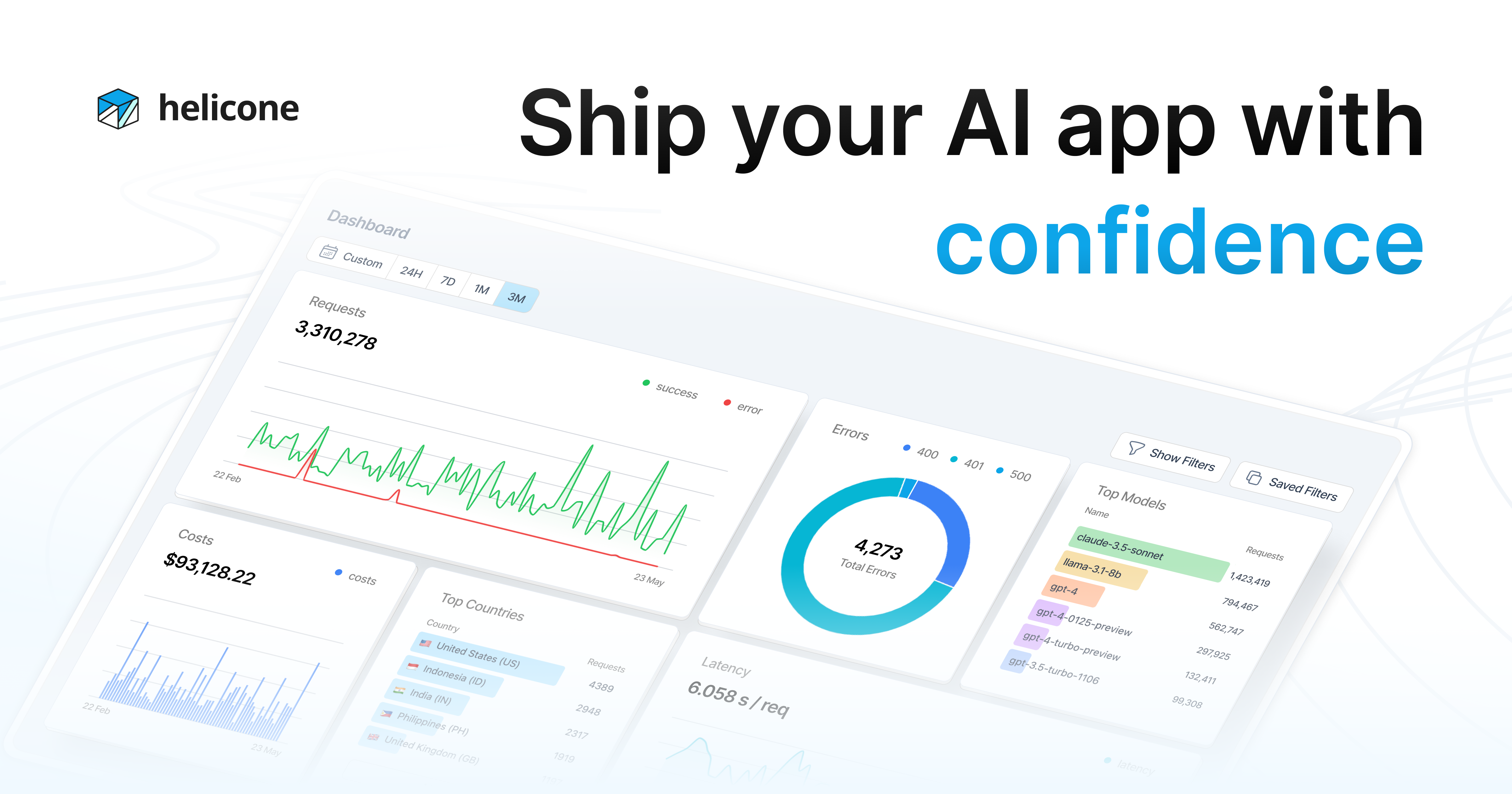 api.openai.com to oai.helicone.ai (or the equivalent Anthropic, Gemini or OpenRouter proxy) and you are logging. No SDK wrappers, no decorators, no code rewrites — Helicone's distributed proxy adds on average 50–80ms of latency.