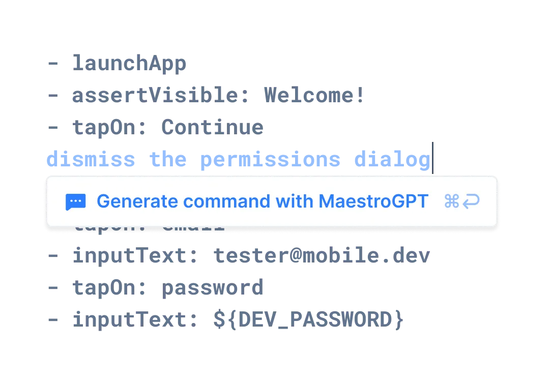 tapOn: "Sign in" command works across all of them with no platform-specific glue.assertWithAI command can verify visual states described in natural language.curl -fsSL "https://get.maestro.mobile.dev" | bash — installs the CLI on macOS, Linux, and WSL. The first tapOn/assertVisible flow takes well under five minutes from cold install.