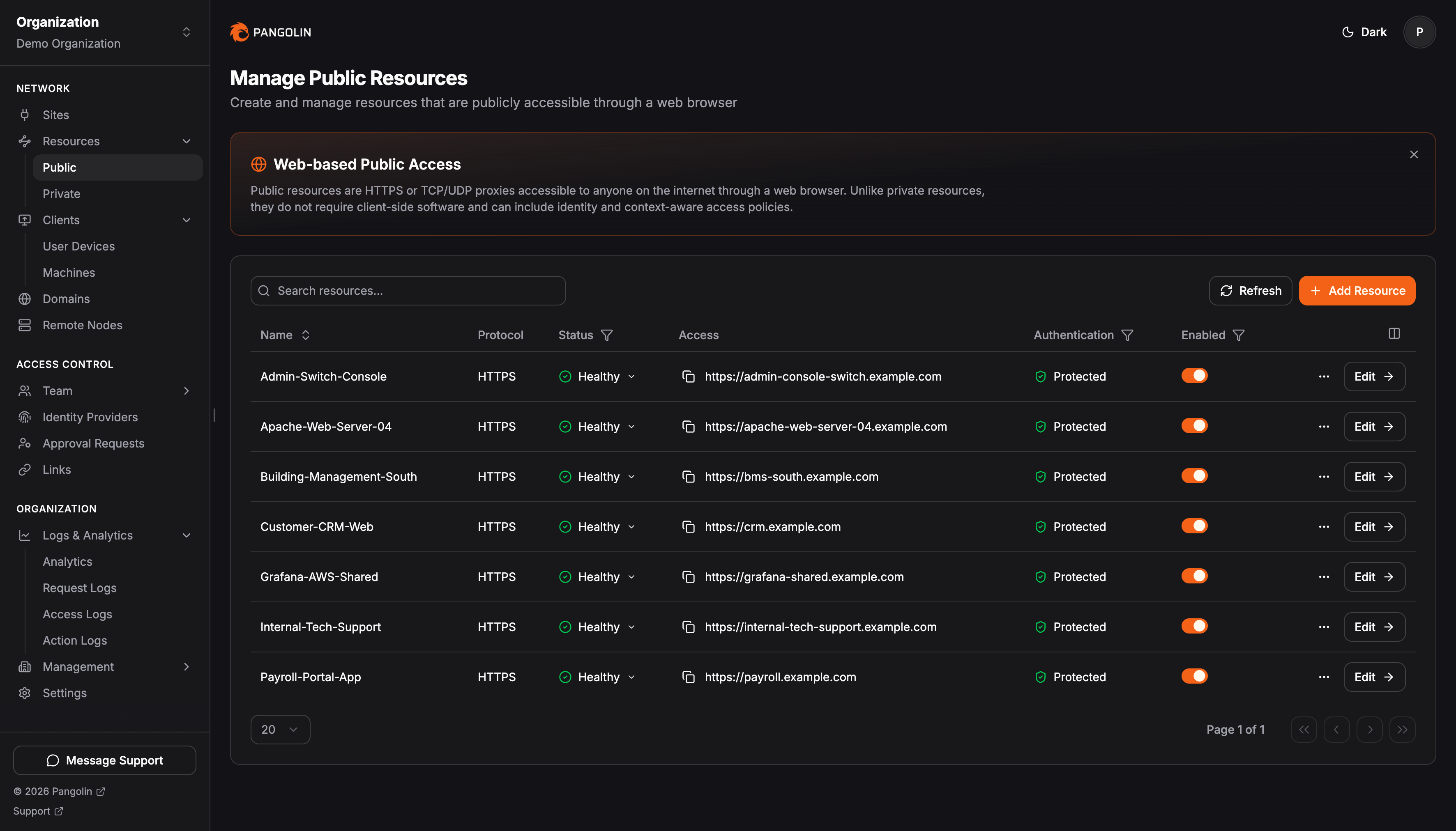 The pitch is simple. If you self-host anything — a home lab, a handful of internal web apps, an SSH jumpbox, a production database behind NAT — getting tunneled, authenticated access has historically meant wiring together at least three tools: a reverse proxy (Traefik, Caddy), a tunnel provider (Cloudflare Tunnel, Tailscale Funnel, ngrok), and an identity layer (Authelia, Authentik, Keycloak). Pangolin rolls all of that into one app with a clean web UI, automatic TLS, OIDC and built-in RBAC — and lets you keep the whole thing on your own infrastructure under an AGPLv3 license.