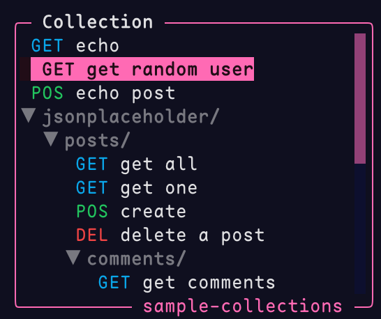 .env files, and previously-typed URLs.Best for: Backend engineers, DevOps practitioners, and SREs who already live in tmux or Neovim; teams that want their API request collections to live alongside source code in Git rather than in a vendor's cloud; anyone who needs to debug an API on a remote server over SSH without forwarding ports back to a local Postman.