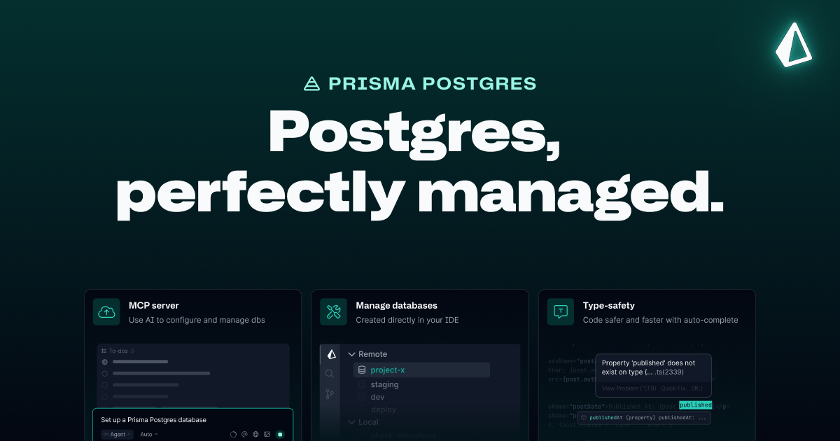 Prisma is a next-generation, type-safe ORM for Node.js and TypeScript that now ships with a fully managed Postgres database, a global query accelerator, and a built-in data browser. We rate it 89/100 — the most ergonomic data layer for TypeScript apps in 2026, with a freshly launched usage-based Postgres tier that finally makes the whole stack viable for hobby projects all the way up to production scale.
