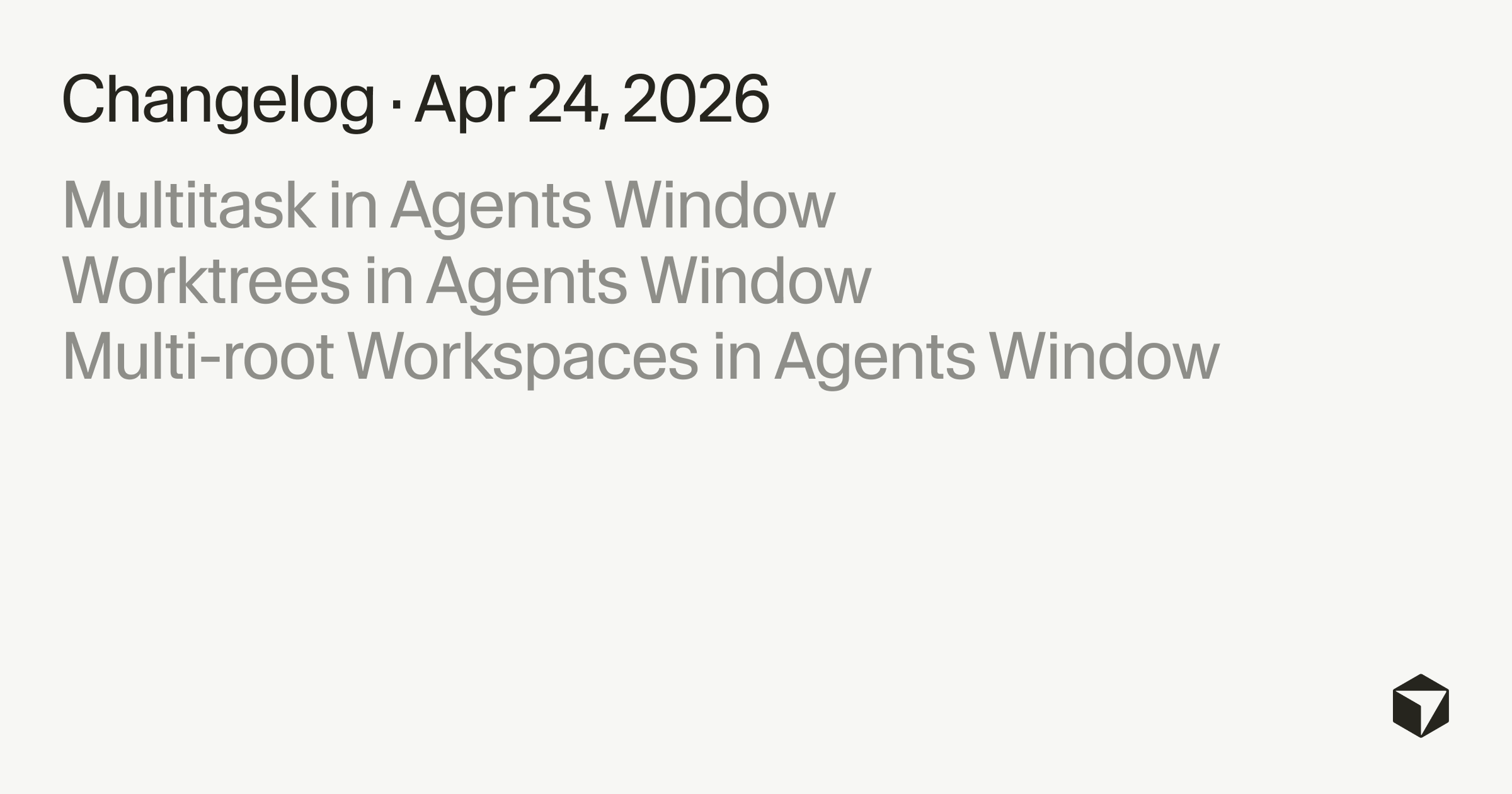 - Cursor — Multitask, Worktrees, and Multi-root Workspaces (official changelog) — primary release notes from Anysphere, April 24, 2026.